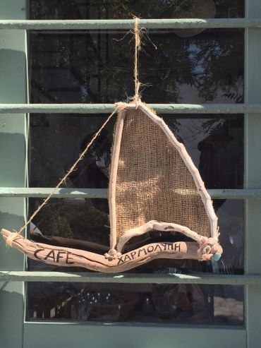 The picture frames enhance and re-inforce the theme of “charmolypi”. These are sayings and poets’ quotes on the topic of happy/sad, melancholy and longing…